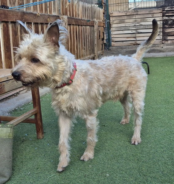 Rocky ist ein sechsjähriger Fox-Terrier-Mix, der von seiner Familie im Tierheim auf La Gomera abgegeben wurde, da sie sich leider nicht länger um ihn kümmern kann. Seit seiner Ankunft hat sich der liebe Rüde sehr schnell eingelebt und zeigt sich als äußerst sozial – sowohl mit Menschen als auch mit anderen Hunden versteht er sich hervorragend.