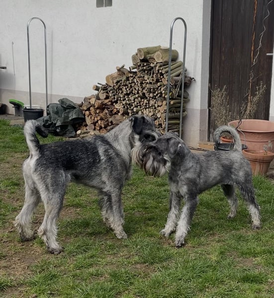 Deckakt erfolgreich durchgeführt – ich erwarte bei Trächtigkeit einen Wurf Mittelschnauzer in pfeffer/salz.