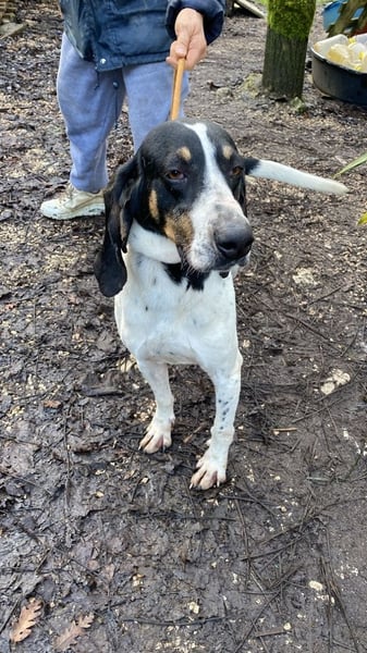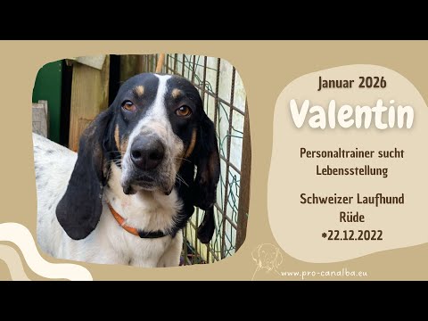 Nun, im frischen Jahr 2026, steht der hübsche Valentin ratlos an einer Kreuzung seines Lebensweges und versteht die Welt nicht mehr. Sein bisheriges Leben war geprägt von der Jagd und wahrscheinlich war er ein wichtiges Mitglied einer festen Meute. Denn der Schweizer Laufhund ist ein Spezialist in der Nachsuche von angeschossenem Wild oder auch Profi darin, dem Jäger das Wild vor die Flinte zu treiben. Nun steht der liebe Bub mit vielen Fragezeichen im Kopf vor den lieben Tierschützern vor Ort, da sich seine Welt von einem Moment auf den nächstem komplett verändert hat