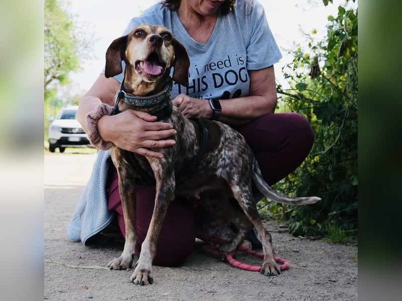 MARIA "i just met a girl named Maria" Diese charmante Dame ist unsere Maria, die in Gauting bei München auf ihre Menschen wartet (gerne mit Ersthund, muss aber nicht sein). Diese Zaubermaus hat sofort alle Herzen auf der Pflegestelle erobert und Besucher noch dazu! Nur nach kurzer Zeit ist sie aufgetaut und hüpft und springt wie ein junges Rehlein umher. Gassigehen ist große Klasse und Schnüffeln macht halt rassebedingt auch super Spaß! Die Schleppleine kann sicher mit Alternativen wie Mentrail oder ähnlichem aufgehoben werden, aber das bedeutet Zeit und Bindung! Die müsst ihr mitbringen bitte, und Lust auf ein Mädel, die ihr Leben gerne chillend auf der Couch verbringt, aber genauso viel Power mitbringt und auch mal Blödsinn macht wie Schuhe im Haus einzusammeln. Maria ist einfach "besonders" und klug! Sie kann schon Auto fahren, übt fleißig Sitz, schläft nachts natürlich durch und ist stubenrein. Sie ist im besten Alter von ca. 2,5-3 Jahren. Sie war auch schon Mama, inzwischen ist sie kastriert. Ihre Babys sind, wie sie, teils auch schon in Deutschland. Wir suchen ein Platzerl bei Menschen mit Sonne im Herzen, denn die hat Maria auch. Über euren Besuch freut sie sich ungemein, deswegen zögert nicht, euch bei Interesse bei uns zu melden! Maria Geschlecht: Hündin Geboren: ca. Mai 2023 Größe: ca. 43 cm Katzenverträglich: unbekannt Aufenthaltsort: Auf Pflegestelle in 82131 Gauting