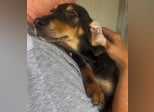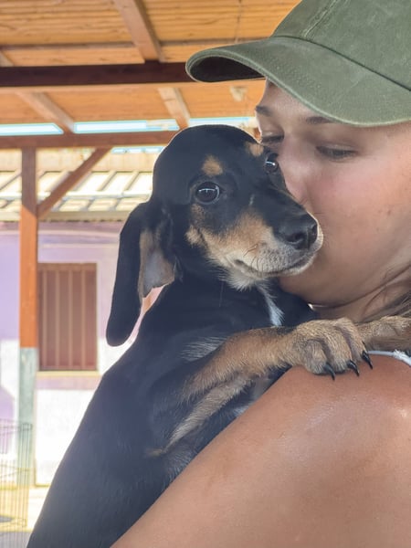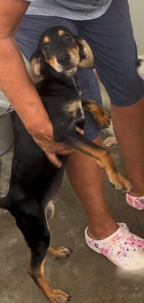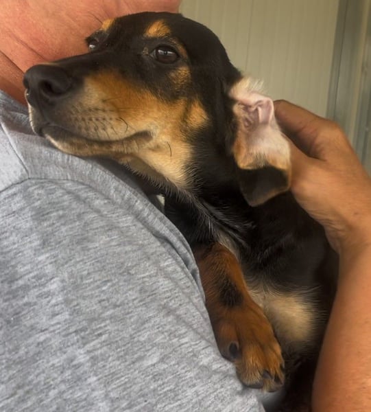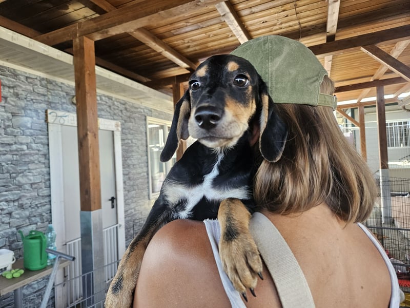 Als wir sie besuchten, wollte sie nur auf den Arm und sich ankuscheln. Sie ist auch nicht die -Stärkste- der 6 Welpen und hat es hier besonders schwer.