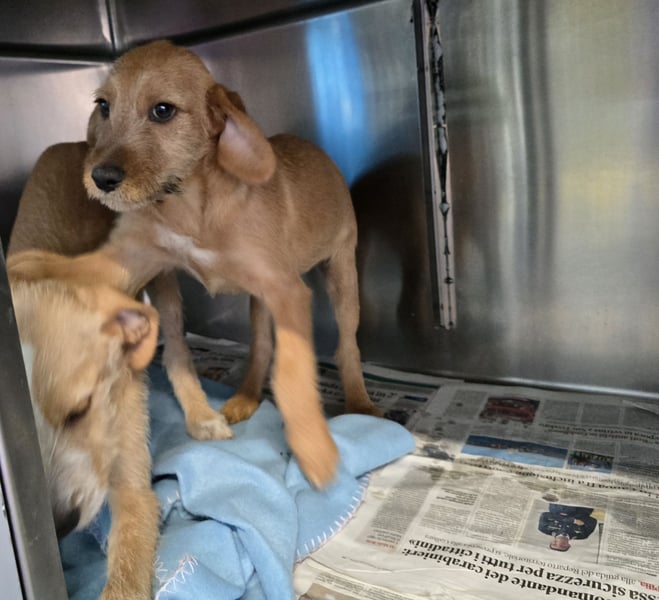 Hier sind sie in Sicherheit, werden durchgeimpft und erhalten nahrhaftes Futter. Sie ist Segugiomischlinge, der Rüde ist etwas größer als seine Schwester.