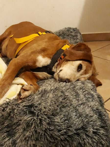 Perla kam am 20.12.2025 an und es ist, als wäre sie schon immer da gewesen. Sie versteht sich super mit dem vorhandenen Rudel, versteht die Tagesabläufe, geht super an der Leine, ist stubenrein, schläft nachts durch, ist super verschmust und einfach nur dankbar.