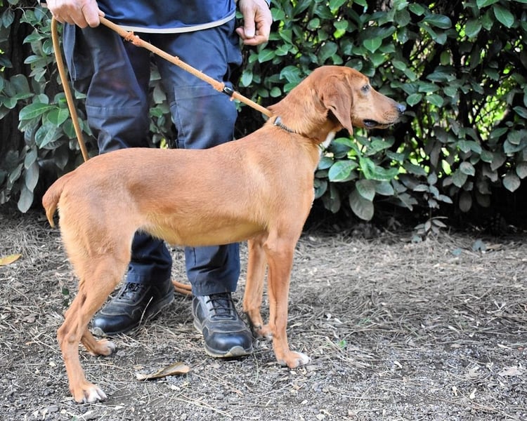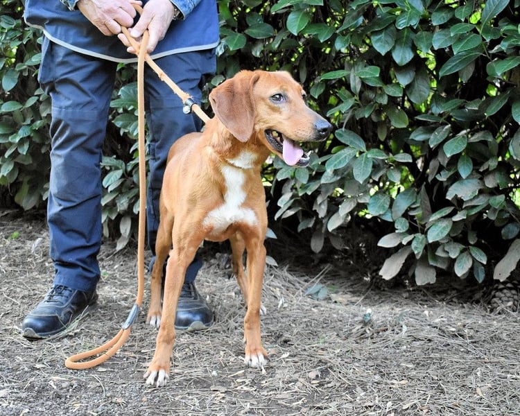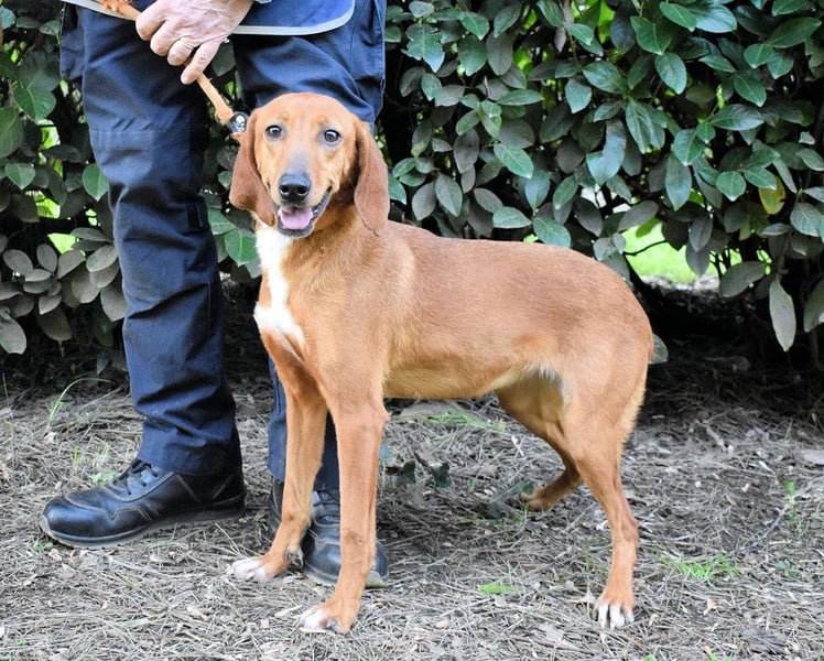 Dank unserer Zusammenarbeit mit italienischen Tierschützern ist es uns aber möglich, einigen der weggesperrten Hunde auf unserer Homepage ein Gesicht zu geben. Und zu diesen Glücklichen gehört auch Clotilda. Im April 2025 durften die Tierschützer Clotilda ein erstes Mal besuchen und fanden eine liebe, neugierige Hündin vor. Sie habe keine Scheu gezeigt und aktiv den Kontakt zu den Zweibeinern gesucht. Sogar ein kurzer Fototermin auf der angrenzenden Wiese sei möglich gewesen, und auch da habe sich Clotilda von ihrer besten Seite gezeigt. Von ihrer besten Jagdhundseite, müsste man anfügen: Nase auf den Boden, und los gehts. Das schon fast vergessene Gras unter den Pfoten, aber vor allem die diversen Gerüche müssen für Clotilda nach den langen Monaten der Gefangenschaft überwältigend gewesen sein. Vermutlich aus diesem Grund hatte sie an jenem Tag ordentlich Zug an der Leine.