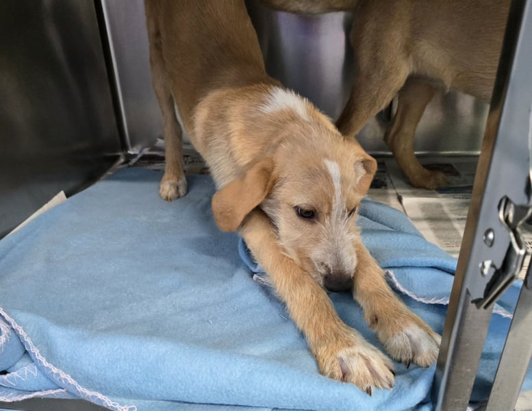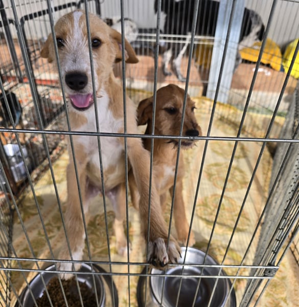 Hier sind sie in Sicherheit, werden durchgeimpft und erhalten nahrhaftes Futter. Sie sind Segugiomischlinge, der Rüde ist etwas größer als seine Schwester. Simon hatte eine Verletzung an der rechten Bauchseite, die aber nun fast verheilt ist.