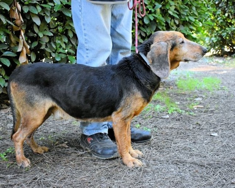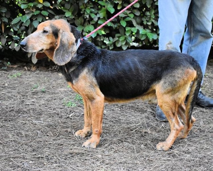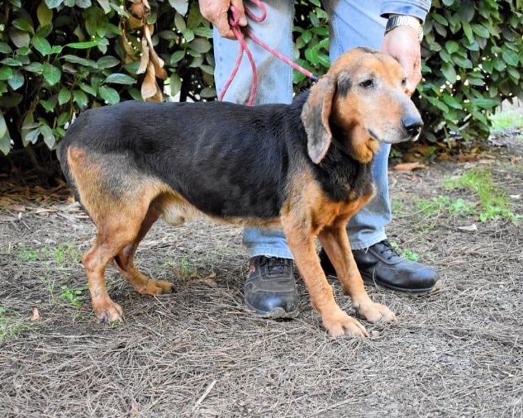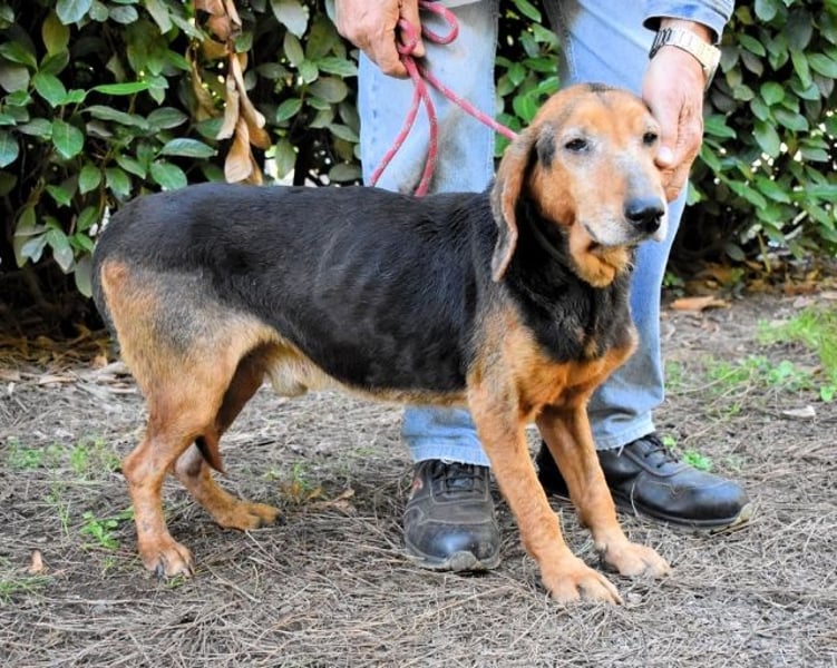 Die mit uns befreundeten Tierschützer durften Cimbro im Oktober 2025 das erste mal in seinem Verließ im großen, lauten, traurigen Hundelager besuchen. Dort eingeliefert worden war der arme Tropf erst Anfang des Monats, war somit vermutlich bei der Begegnung mit den Tierschützern noch etwas durch den Wind: neue Umgebung (kahle Betonzelle), keine Bewegung (weil 24/7 in kahler Betonzelle), neue Hundekumpels (Rüden und Weibchen, das Zusammenleben scheint gut zu funktionieren), das Futter so-so (war früher vermutlich nicht besser), seltsame Menschen / Wärter, die nie Zeit haben und für die jeder Hund nur eine Nummer ist (und das war früher mit ziemlicher Sicherheit auch nicht anders für Cimbro). Das könnte die Erklärung dafür sein, dass er auf den Besuch erstmal eher zurückhaltend reagierte. Von Aggression keine Spur, einfach nur vorsichtig. Die Tierschützer haben uns berichtet, dass Cimbro an den Umgang mit Menschen gewöhnt zu sein scheine und auch gut an der Leine laufe. «Die Leine scheint er zu kennen, aber er fühlt sich damit nicht ganz wohl. Sobald wir versucht haben, ihn in eine bestimmte Richtung zu lenken, bekam er Angst und hat sich etwas zurückgezogen.» Cimbro ist ein in die Jahre gekommener Jagdhund, und sowohl sein Verhalten als auch sein Zustand deuten darauf hin, dass er sein Leben bei einem Jäger gefristet hat und nun nicht mehr «zu gebrauchen» war. Ob er ausgesetzt und schlussendlich als Streuner von Hundefängern ins Lager gebracht worden war oder ob sein «Besitzer» ihn abgegeben hat, wissen wir nicht und spielt auch keine große Rolle. Fakt ist, er benötigt ganz dringend unsere Hilfe. Er braucht eine liebevolle Familie (oder Einzelperson), die ihm all das gibt, was ihm bislang verwehrt worden ist: Liebe, Respekt, Familienanschluss, gutes Futter und regelmäßige Mahlzeiten, einen warmen, weichen Schlafplatz, tägliche Abenteuerspaziergänge in der Natur, und nochmals Liebe, Liebe, Liebe. Denn Cimbro ist nicht nur ein armer alter Hund, der sich nie an gewisse Umgangsformen gewöhnen konnte, sondern sich davor fürchtet. Nein, Cimbro kann auch anders und hat den Tierschützern auch diese Seite sehr deutlich gezeigt. Er scheint ein sehr sensibler, kluger Hund zu sein, denn, nochmals O-Ton der Tierschützer: «Wenn Cimbro sich nicht bedroht fühlt, dann zeigt er, dass er im Grunde ein selbstbewusster, gar nicht ängstlicher Hund ist. Sobald er gemerkt hat, dass wir es nur gut mit ihm meinen, wurde er entspannter und hat sogar von sich aus den Kontakt zu uns gesucht.»
