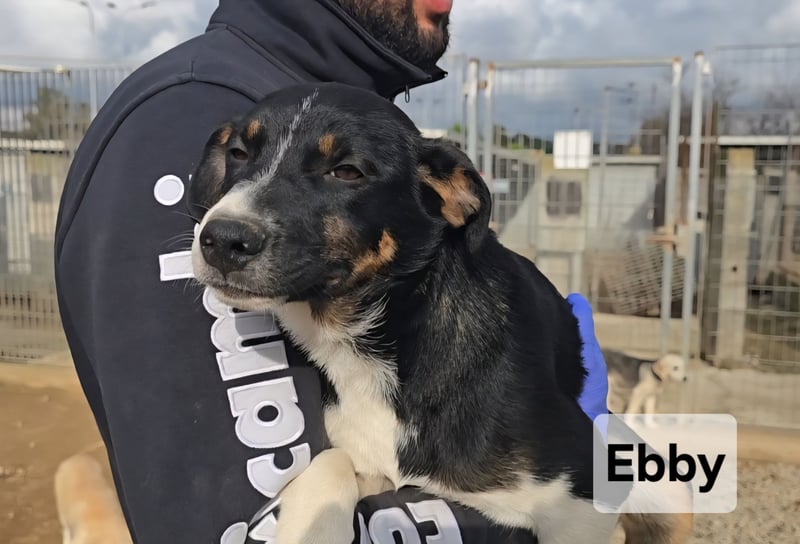 Da ist Ebby, ein schwarze weiße Hündin, die ihrem Bruder Elias zum Verwechseln ähnlich sieht. Die Beiden sind sehr aufgeweckt und freuen sich über jede Aufmerksamkeit.