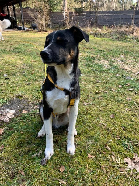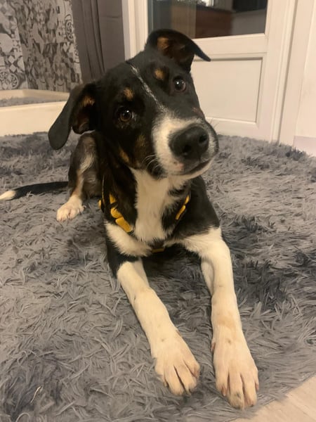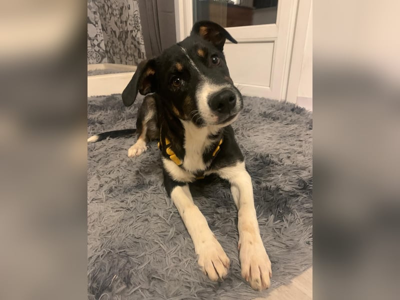 Er ist sozial mit den vorhandenen Hunden und Katzen, versteht schon, was man von ihm will, er geht gut an der Leine, fährt problemlos im Auto.