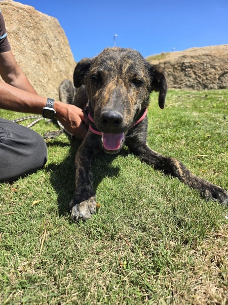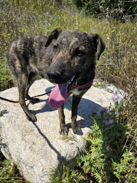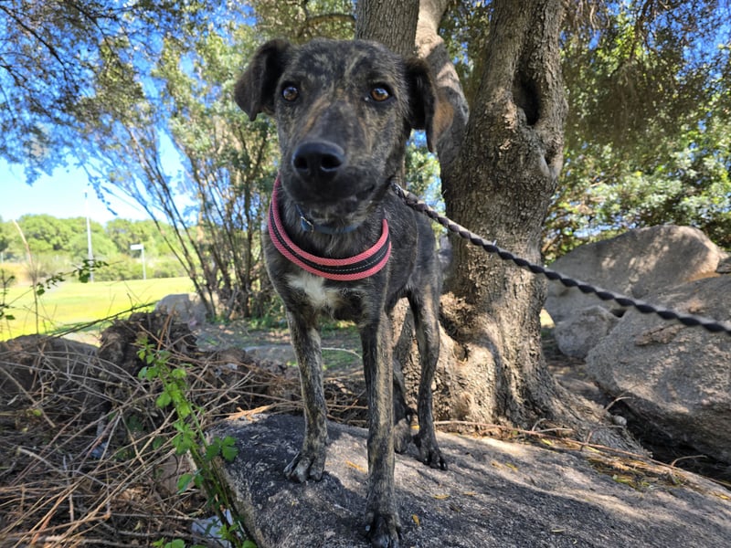Im Innenhof, wo er frei laufen kann für eine kurze Zeit, zeigt er sich sozial mit den anderen Hunden. Ruft man ihn, kommt er angelaufen und drückt sich ganz fest an. Rosino liebt es, gestreichelt zu werden und bei Menschen zu sein.