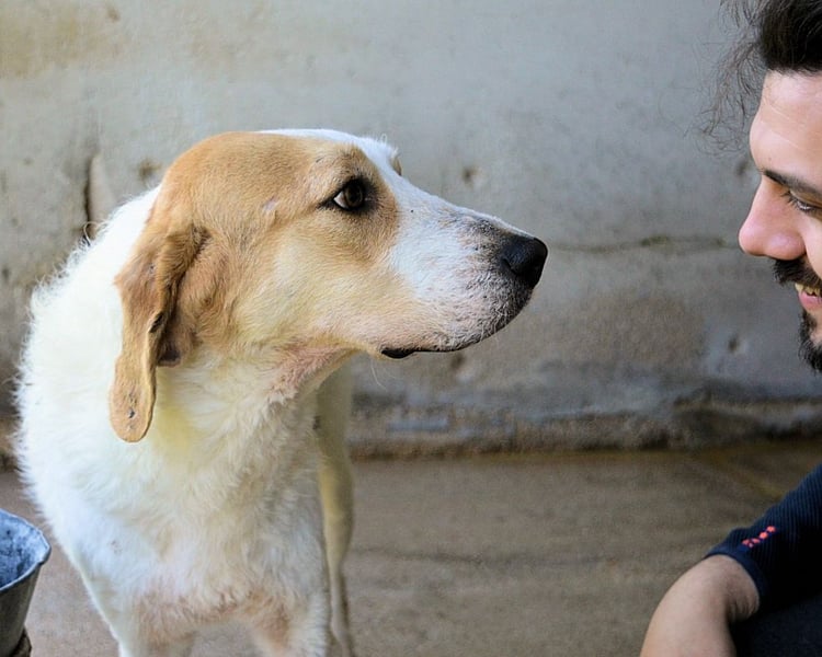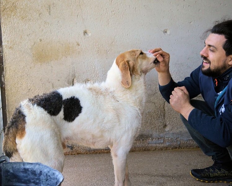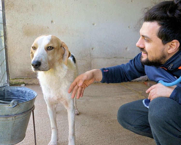 Für die allerallermeisten Hunde bedeutet das Lager Endstation. Aber, und jetzt kommen wir zum hoffnungsvollen Teil der Geschichte, es gibt auch ein paar vom Glück geküsste Fellnasen, so wie Anicho einer ist. Ihn durften die mit uns befreundeten Tierschützer nämlich besuchen, filmen und fotografieren, um ihn hier vorzustellen. In der Hoffnung, dass er schnellstmöglich seinen Kerker verlassen und zu seinen Lieblingsmenschen ziehen kann. Lange sollte Anicho nicht warten müssen, denn seien wir ehrlich: Er ist ein Traumhund, finden Sie nicht? Die Tierschützer jedenfalls sind genau der Meinung. Sie haben nämlich einen Hund kennengelernt, der einfach nur lieb und gesellig ist. Zu Beginn habe er ein klein wenig schüchtern gewirkt, sei aber ganz schnell aufgetaut und habe aktiv den Kontakt zu den ihm fremden Menschen gesucht. Er ließ sich streicheln und zeigte, dass er gut sozialisiert ist und sich mit seinen beiden Zellengenossen (Rüde und Weibchen) problemlos versteht. Nur beim an der Leine gehen gebe es noch etwas Luft nach oben.