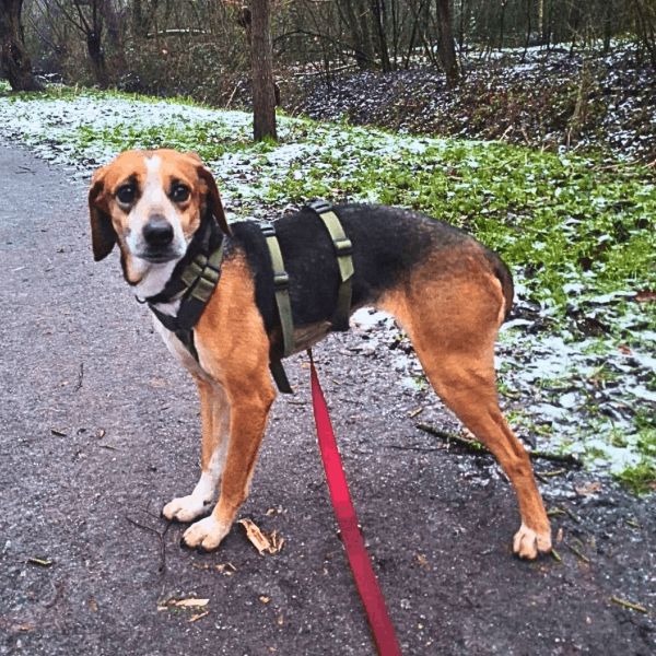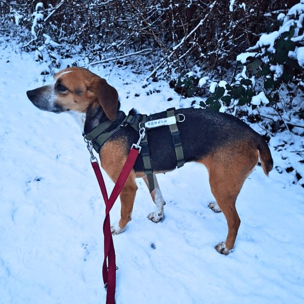 Im Alltag zeigt sich Pamela inzwischen stubenrein und läuft schon gut an der Leine. Spaziergänge klappen immer besser, solange die Umgebung überschaubar ist. An der Straße wird sie noch sehr ängstlich – hier hilft ihr vor allem ruhiges, gleichmäßiges Weitergehen. Bleibt man stehen, verfällt sie schnell in Unsicherheit, Bewegung gibt ihr hingegen Halt und Orientierung.