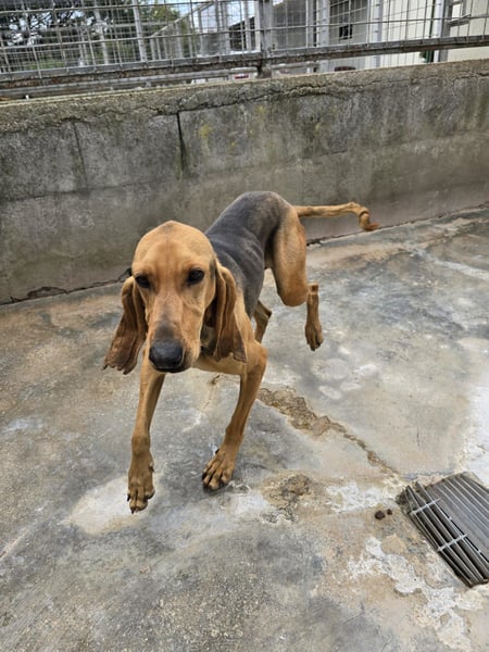 04/2025: Italo lebt seit ca. 7 Monaten in einem Tierheim in der Nähe von Neapel. Er wurde mit einer großen Verletzung am Oberschenkel auf der Straße gefunden und zur Versorgung der Wunde in eine Klinik gebracht. Die Verletzung war so schlimm, dass er operiert werden musste. Die Wunde ist verheilt, zurückgeblieben ist eine Narbe. Leider ist es nicht die einzige, denn sein geschundener Körper ist mit Narben übersät, seine Ohren sind von der Jagd gezeichnet und auch seine Rute wurde in Mitleidenschaft gezogen.