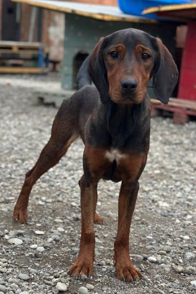 Frenki ist eine Bracke, vermutlich steckt in ihm ein Serbischer bzw. Balkan-Laufhund – eine Rasse, die für ihre Ausdauer, Klugheit und Anhänglichkeit bekannt ist. Diese Hunde sind treue Begleiter, die gerne in Bewegung sind und zugleich eine enge Bindung zu ihren Menschen aufbauen.