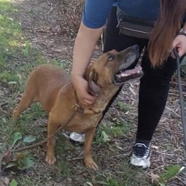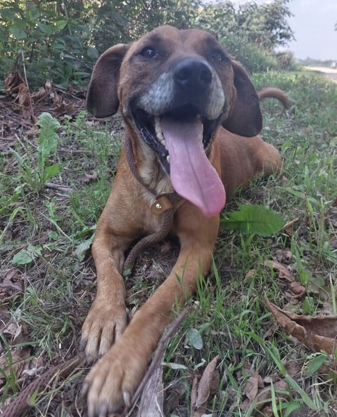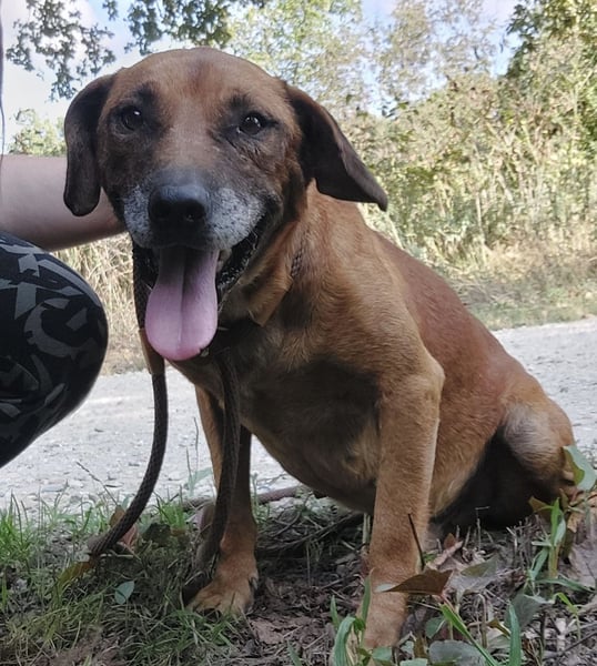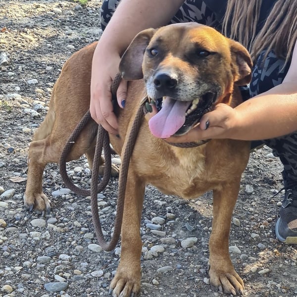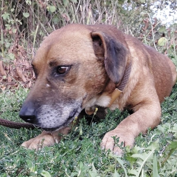 Roger ist ein Bub, laut Tierarztschätzung ca. 4,5 Jahre alt (geb. 07.05.2021), 51 cm groß und 24 kg schwer. Aufgrund seiner stark abgenutzten und teilweise fehlenden Zähne sowie seines ruhigen Lebensrhythmus vermuten wir jedoch, dass er etwas älter ist. Optisch ähnelt er einem Rhodesian Ridgeback - Laufhund/Bracke Mix.