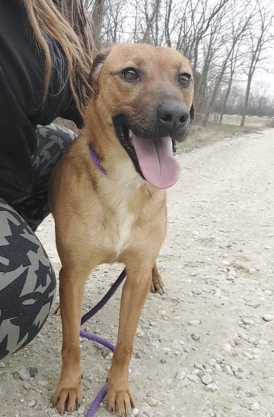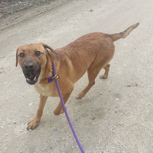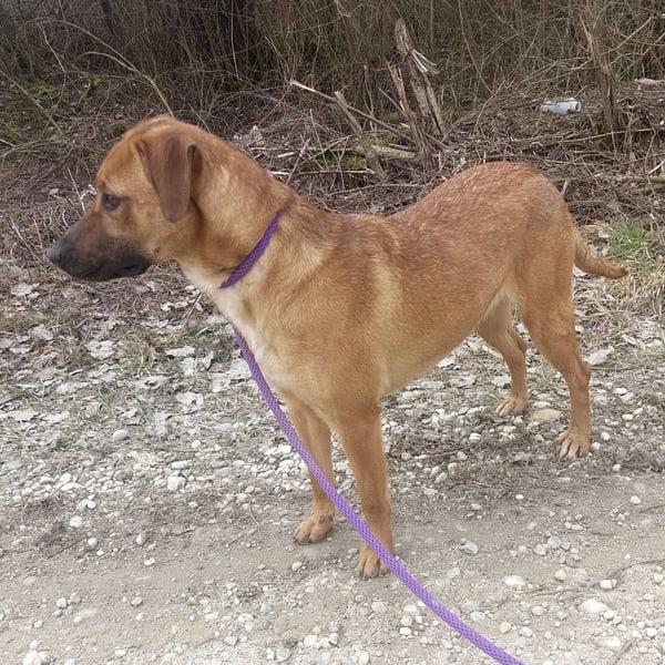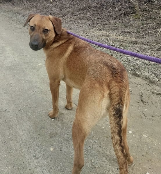 Joliee ist ein Mädchen, sie ist laut Tierarztschätzung ca. 1,5 Jahre alt (geb. 15.10.2024), wiegt 23kg und ist 52cm groß. Vermutet wird ein Bracke-Vizsla Mischling.
