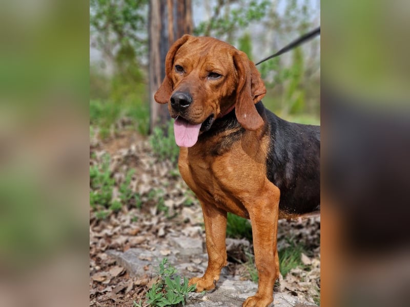 Selma hat es im Tierheim sehr schwer. Sie wurde in der Nähe des Tierheims gefunden, mit extrem schlechter Haut und völlig unterernährt. Sie muss sich schon lange alleine durchgeschlagen haben. Durch den Stress im Tierheim hat sie immer noch Hautprobleme, die aber in Behandlung sind. Ansonsten ist sie SEHR lieb und absolut menschenbezogen! Eine ganz tolle Hündin, die sehnsüchtig darauf wartet, endlich von der Kette zu kommen und in ein Zuhause ziehen zu dürfen. Sie wäre sicher rassetypisch sehr gut geeignet für Fährtenarbeit, Suchspiele und schöne lange Spaziergänge in der Natur. (Vernünftige) Kinder sollten kein Problem sein.