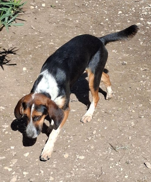 Wendy wurde vom Jäger abgegeben, wie so häufig. Wir gehen also von Jagdtrieb aus! Wendy ist eine wunderschöne Mischlingshündin. Ein dreifarbiger serbischer Laufhund war auf jeden Fall beteiligt. Aus eigener Erfahrung kann ich nur sagen, es sind ganz wunderbare Hunde, mit denen die Freizeit sehr viel Spaß macht: Wandern, Fährtenlesen, Apportieren. Alles macht der Segugio jugoslavo, wie er in Italien genannt wird, mit einer großen Begeisterung! Und seien Sie gewiss, mit Ihnen Kuschel-Zeit zu verbringen, macht ihr sicher genauso viel Freude!