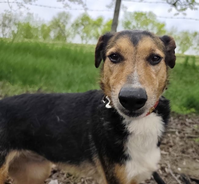 Nica ist ein Mädchen, sie ist laut Tierarztschätzung ca. 6,5 Jahre alt (geb. 15.12.2019.), wiegt 20kg und ist 55cm groß. Vermutet wird ein Mischling, eventuell mit einer Bracke oder Terrier.