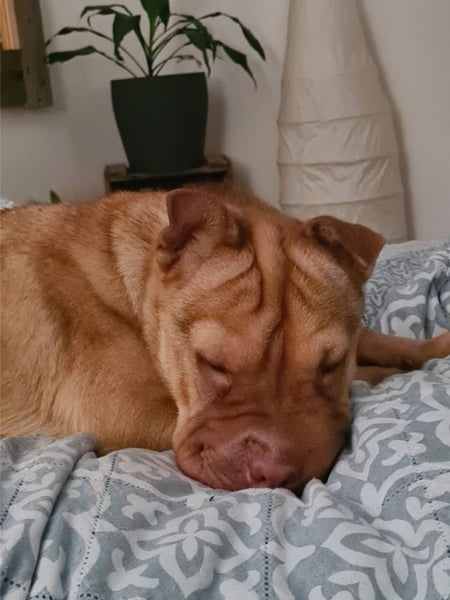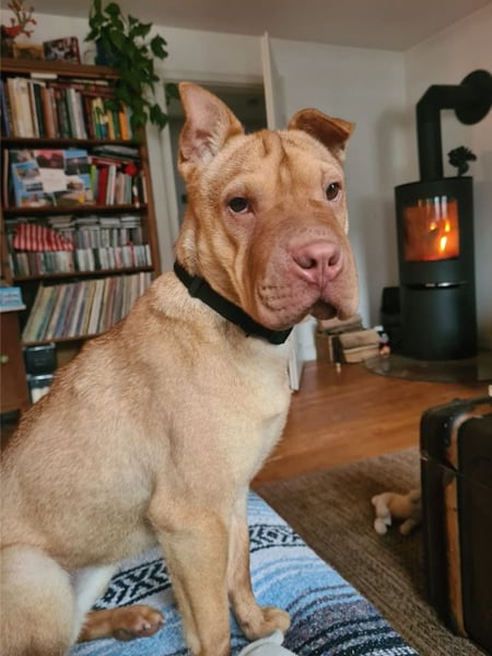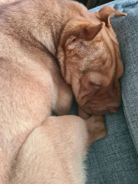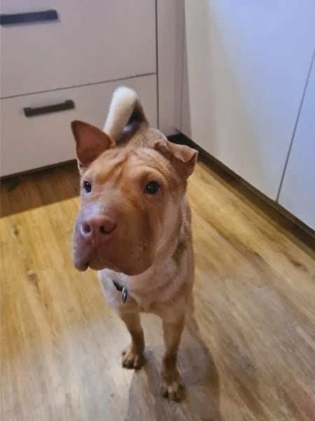 Mit anderen Hunden ist Bonnie gut verträglich, zeigt ein soziales Verhalten und ordnet sich unter. Besonders erfreulich ist, dass sie auch mit Katzen problemlos zusammenlebt – eine wunderbare Voraussetzung für ein harmonisches Mehrtier-Zuhause. Bitte beachten Sie, dass Shar-Pei aufgrund ihrer Falten manchmal missverstanden werden können, da ihre Körpersprache für andere Hunde nicht immer leicht zu lesen ist. Bonnie begegnet Artgenossen jedoch ruhig und unaufgeregt.
