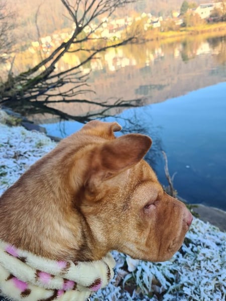 Bonnie ist eine junge menschenbezogene Shar-Pei-(Mix)-Hündin. Nachdem ihr Besitzer inhaftiert wurde, blieb sie allein in einem Haus zurück – ohne Ansprache, ohne Nähe, ohne Sicherheit. Aufmerksame Nachbarn verständigten schließlich Polizei und Veterinäramt, sodass Bonnie gerettet werden konnte. Inzwischen wurde ihr Cherry Eye in Ungarn operiert und sie durfte auf eine Pflegestelle nach Deutschland ziehen.