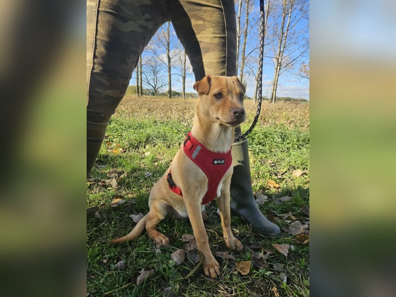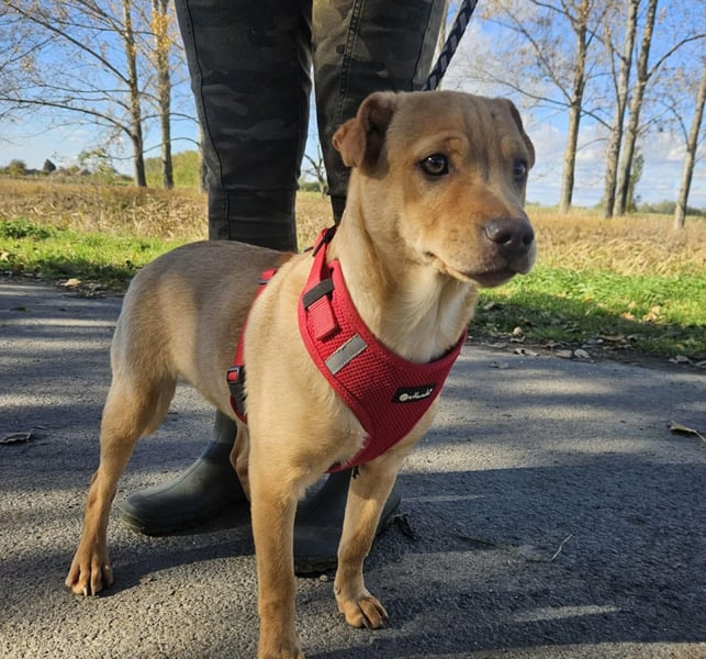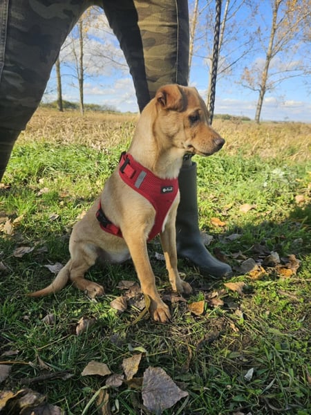 Libby, geboren ca. im Juni 2025, ist eine etwa 41 cm große Mischlingshündin, die im Juli 2025 gemeinsam mit ihren Geschwistern aus völlig untragbaren Verhältnissen ins Tierheim kam.