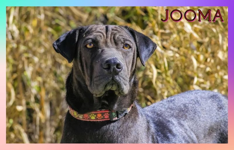 Jooma ist sehr sanft und lieb zu Menschen und verträgt sich gut mit anderen Hunden. Sie läuft gut an der Leine und fährt auch gerne Auto.