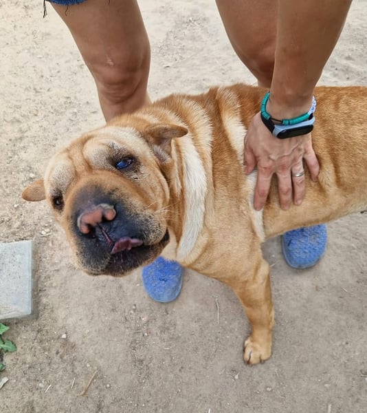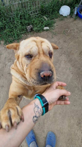 Unser Tierarzt vermutet, dass Shila ein reinrassiger Shar Pei ist. Wir suchen für die intelligente, ruhige und eigenständige Hündin mit starkem Charakter eine erfahrene und konsequente Familie, die sie souverän und ruhig führen kann.