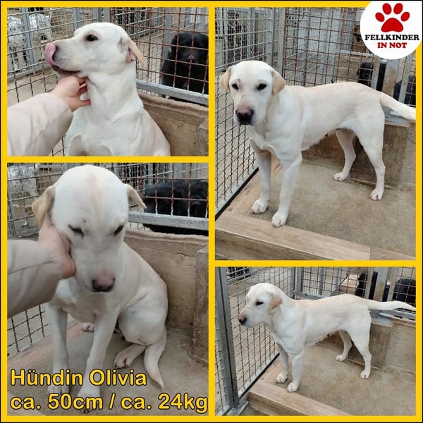 Olivia ist eine hübsche Labrador mit eventuell Shar Pei Mischlings-Hündin. Sie ist noch nicht sehr lange im Shelter und man merkt, dass sie mit dem Lärm in den Zwingern nicht gut zurecht kommt. Vermutlich hatte sie vorher ein Zuhause, da sie einen gepflegten Eindruck macht. Olivia ist ruhig und freundlich und möchte keinen Ärger. Sie hält sich im Zwinger aus Streit heraus und bleibt lieber im Hintergrund.