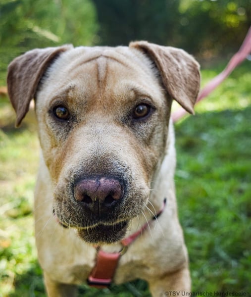 Hier kommt Eliza, unser freundlicher Shar Pei Mischling! Eliza ist eher ruhig und zeigt sich interessiert an Menschen und anderen Hunden. Im Umgang mit Artgenossen beider Geschlechter ist sie unkompliziert.
