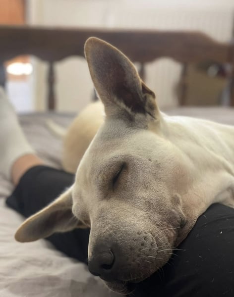 Chiara ist perfekt im Haus, sie teilt sich brav das Bett mit ihren Artgenossen und kuschelt sich nachts gerne zwischen die Füße unserer Volontäre, um dort einzuschlafen. Sie liebt es, sich auszutoben, richtig zu rennen – und danach einfach mit ihren Menschen auf dem Sofa zu entspannen.