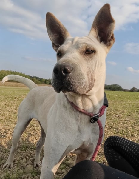 Chiara ist ein Mädchen, laut Tierarztschätzung ca. 1 Jahr alt (geb. 12.07.2024), wiegt etwa 15 kg und ist ca. 45 cm groß. Vermutet wird ein Shar Pei - Thai Ridgeback Mischling.