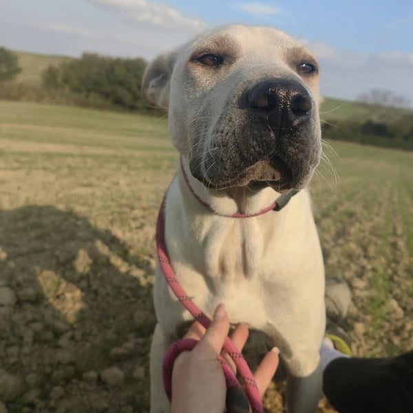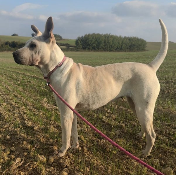 Mit anderen Hunden ist sie wunderbar verträglich – egal ob groß, klein, Rüde oder Hündin, sie begegnet allen freundlich und sozial. Ein Katzentest ist hier leider nicht möglich.