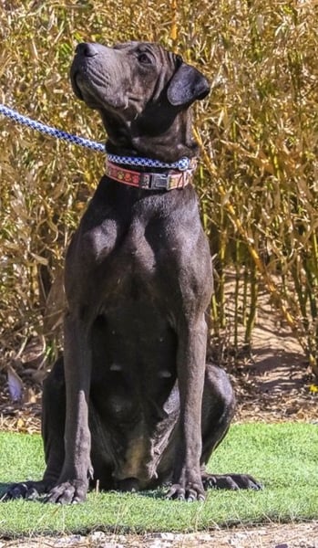 Jooma ist sehr sanft und lieb zu Menschen und verträgt sich gut mit anderen Hunden. Sie läuft gut an der Leine und fährt auch gerne Auto.