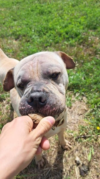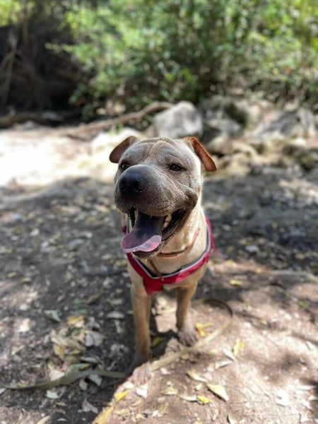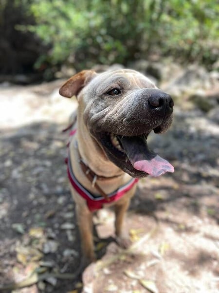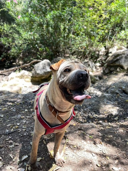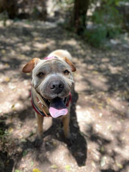 Chapi (*ca. 04/2023, ca. 52 cm) ist ein verschmuster Shar Pei-Mischling, den nichts so leicht umhaut. Als er Anfang April 2025 ungechipt in unserem spanischen Tierheim TripleA in Marbella ankam, hatte er zwar ein paar Kilos verloren, aber niemals seine gute Laune.