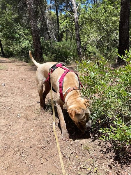 Autofahren ist kein Problem für ihn und er läuft ruhig an der Leine und zieht nicht. Nur wenn er etwas Interessantes riecht, läuft er normalerweise im Zickzack und schnüffelt dann an allem, was er will. Wie es für Shar Peis üblich ist, kann er dann etwas stur sein und hört nur, wenn es ihm passt!