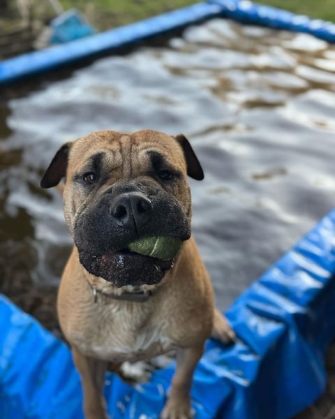 Er schmiegt sich wie eine Katze an seine Menschen an und liebt es gekrault zu werden. Außerdem steht der Jungspund total auf Wasser. Selbst an den kältesten Tagen plantscht er vergnügt im Wasser herum.