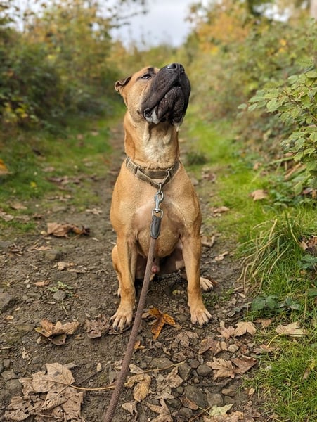 Bei guter Führung kann er sehr gut an der lockeren Leine gehen, so dass auch Spaziergänge mit anderen Hunden möglich sind. Aufgrund seines Jagdtriebs läuft er entweder an der kurzen Leine oder der Schleppleine.