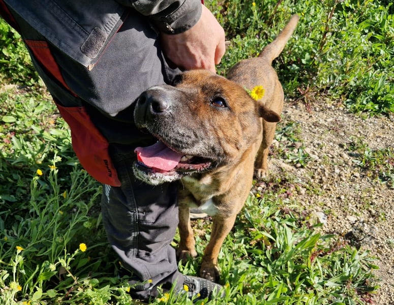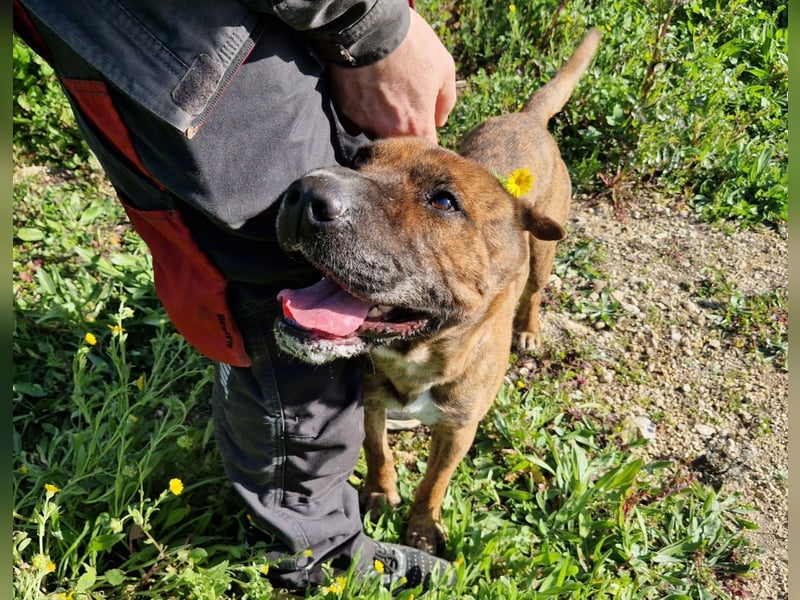 Für Streicheleinheiten ist er jederzeit zu haben und begegnet allen Menschen fröhlich und freundlich. Und auch Artgenossen schätzt der Rüde.