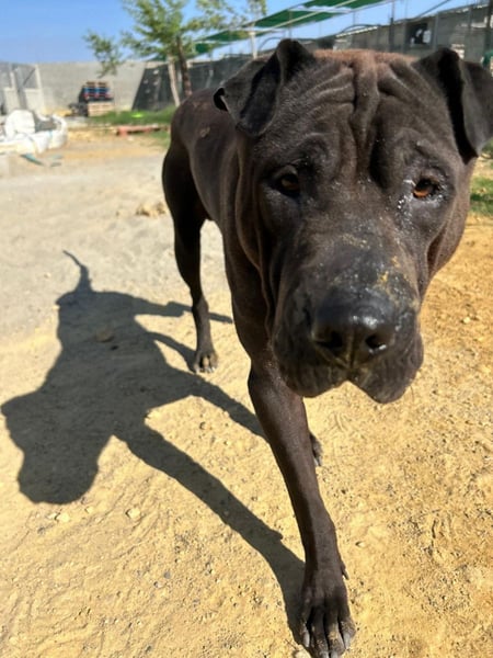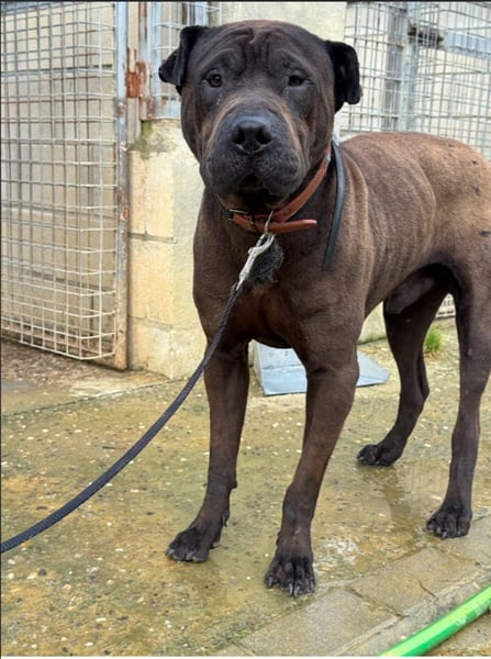 Johnny ist ein vierjähriger Shar Pei in wunderschöner Schokofarbe, der nach einer schweren Zeit im Tierheim von Mastines en la calle endlich zur Ruhe kommen durfte. Anfangs war der sensible Faltenhund sehr misstrauisch und ängstlich – verständlich, denn er kam aus extrem schlechter Haltung. Trotz allem, was er durchleiden musste, zeigte er aber nie Aggression, was für einen Rüden seiner Rasse bemerkenswert ist. In dem Jahr, das er nun im Tierheim lebt, hat Johnny unglaublich viel gelernt und zeigt jeden Tag, wie viel in ihm steckt.