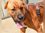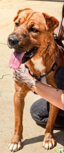 Anubis zeigt sich als freundlich und lässt sich gut anfassen. Mit dem Geschirr hat er keine großen Probleme mehr. Typisch wie ein Shar Pei hat er seinen ganz eigenen Kopf, ist aber eher der sensible Typ. Das merkt man ihm auch deutlich an, denn Anubis ist im Tierheim ziemlich gestresst. Auf andere Hunde geht er häufig stürmisch zu, daher sollte ein vorhandener Hund deutlich ruhiger sein.