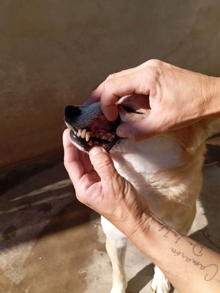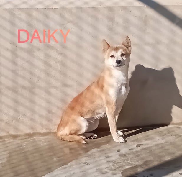 Besonders auffällig ist, dass Daiky einige Zähne verloren hat, vor allem im oberen Bereich. Vielleicht war es der Versuch, sich aus den engen Grenzen ihres früheren Lebens zu befreien, indem sie an Türen nagte. Diese kleine Eigenheit macht sie einzigartig und erzählt von ihrer Stärke. Trotz dieser Besonderheit ist sie eine liebenswerte Begleiterin, die mit anderen Hündinnen problemlos spielt und sich im Alltag gut integriert.