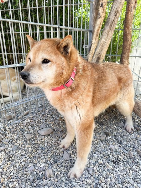 Dort zeigt sie sich als eine sehr niedliche, etwa vier Jahre junge Hündin, bei der es sich vermutlich um die Mutter der drei schüchternen Brüder Shouta, Botan und Yokai handelt. Aktuell ist sie noch sehr schüchtern und zurückhaltend, zeigt aber bereits erste wichtige Fortschritte: Sie lässt sich schon auf den Arm nehmen und beginnt, neugierig ihre nähere Umgebung zu erkunden. Aufgrund dieser wachsenden Neugier ist davon auszugehen, dass sie in einem stabilen häuslichen Umfeld eine schnelle Lernerin sein wird.