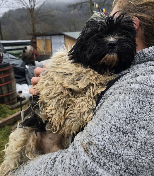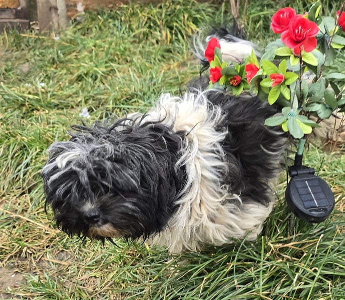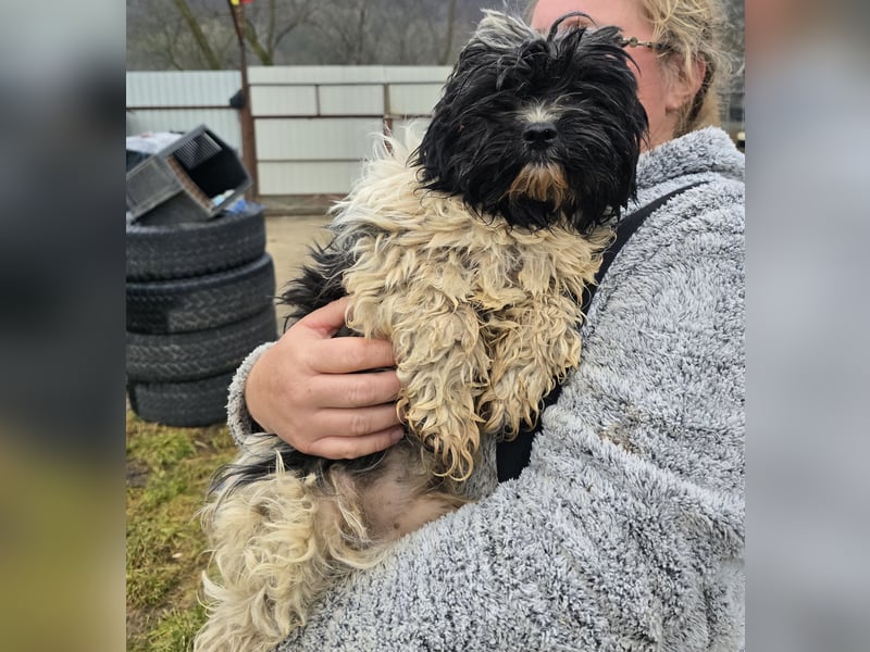Henry, Shih-Tzu-Mischlings-Junge, geboren am 07.01.2025, hat eine Schulterhöhe von ca. 30 cm und wiegt ca. 7 kg.