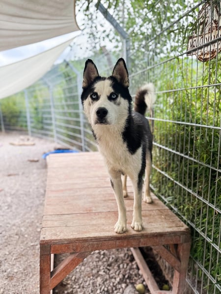 Dort zeigt er sich als sehr sozialer Rüde mit tollem Temperament. Er hat viel Energie, ist sehr verspielt und aktiv, außerdem sehr gesprächig. Ein typischer Husky eben. Die Leine kennt er schon, an der zieht er aber sehr, das muss also noch trainiert werden. Ohne Leine würde er vermutlich auf Abenteuer gehen, eine neue Familie hat hier also eine besondere Verantwortung, auf ihn aufzupassen.