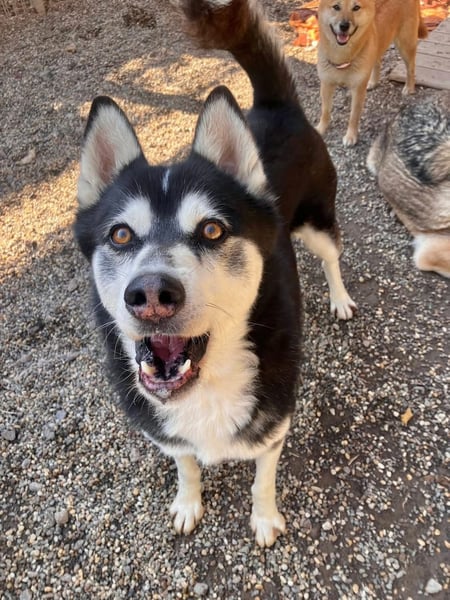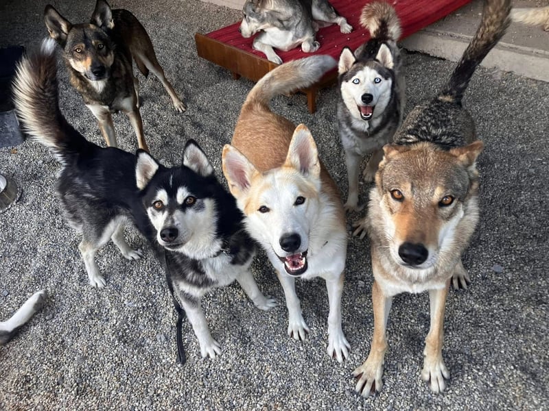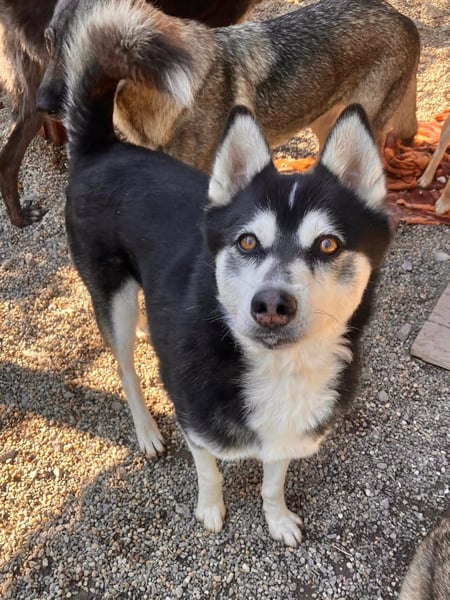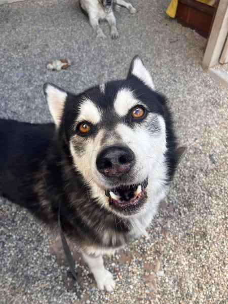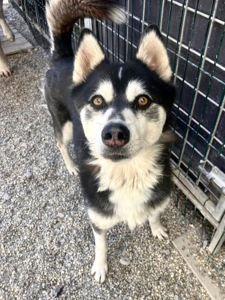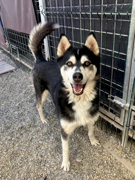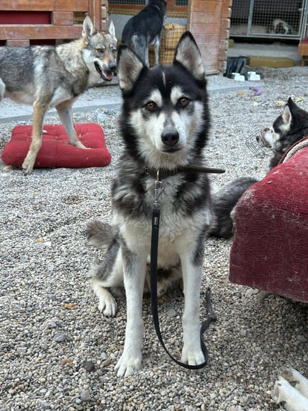 Husky-typisch ist er sehr kommunikativ und „spricht“ viel mit Menschen, eine hellhörige Wohnung wäre also nicht so günstig als neues Zuhause. Mit anderen Hunden kommt er gut zurecht, wobei er mit manchen Rüden auch mal Streit sucht. Ein Ersthund darf also gerne vorhanden sein, allerdings sollte das eine Hündin sein.