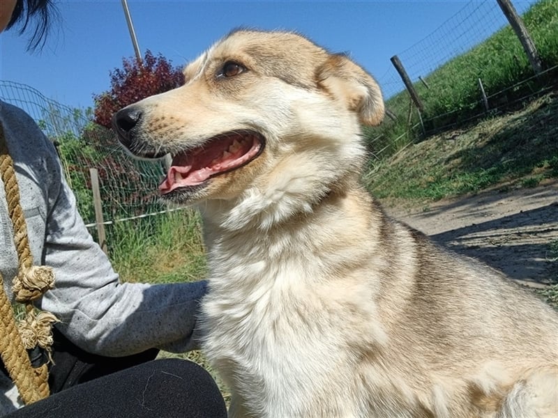 Queen Latifah ist ein Huskymix, sehr menschenbezogen und super lieb zu Menschen.