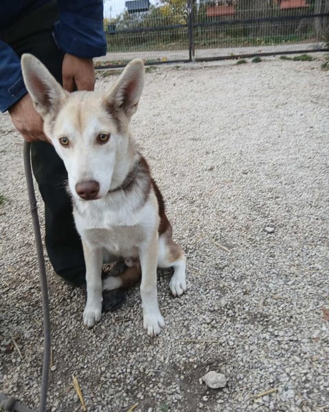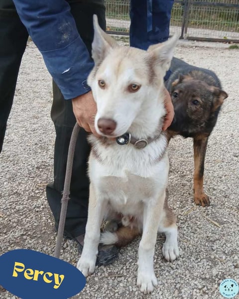 Percy, ein ca. 6 Monate alter Husky-Mix, wurde auf einer Wiese bei Budapest gefunden – ganz allein.