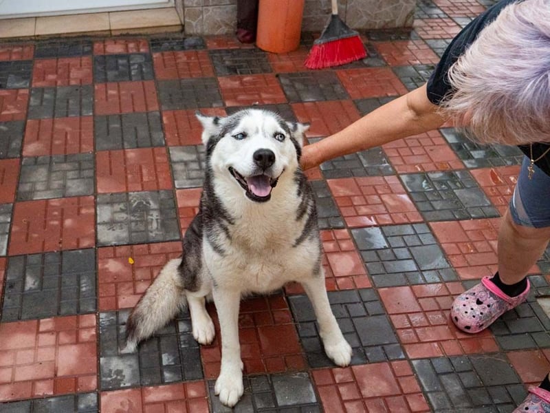 Sie wurde in Bukarest auf der Straße gefunden, in der Nähe einer Autowerkstatt, wo tierliebe Menschen ihr regelmäßig Futter gaben. Eine engagierte Frau nahm sie schließlich bei sich auf, ließ sie tierärztlich untersuchen, chippen, impfen und entwurmen. Da sie jedoch in einer kleinen Wohnung mit ihrer Tochter lebt, merkte sie bald, dass ein junger, aktiver Husky mehr Platz und Beschäftigung braucht, als sie bieten kann. So kam Sheylla zu ihrer Mutter, die ein Haus mit Garten hat.