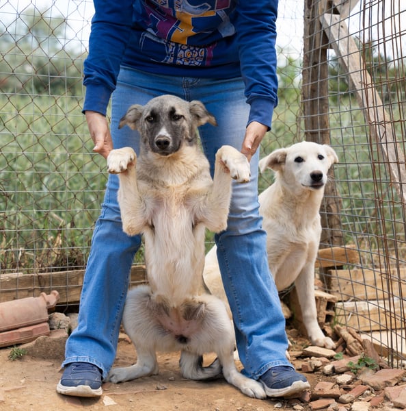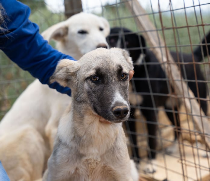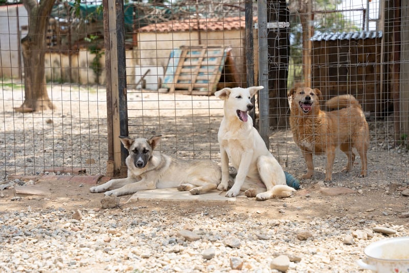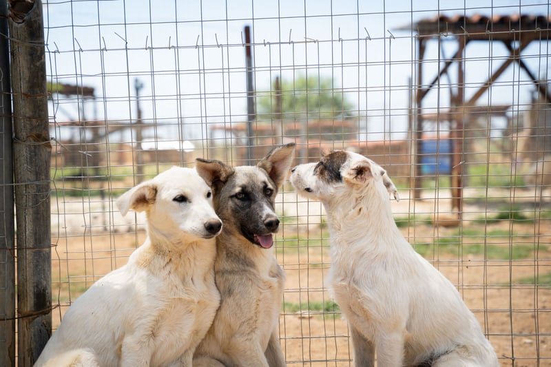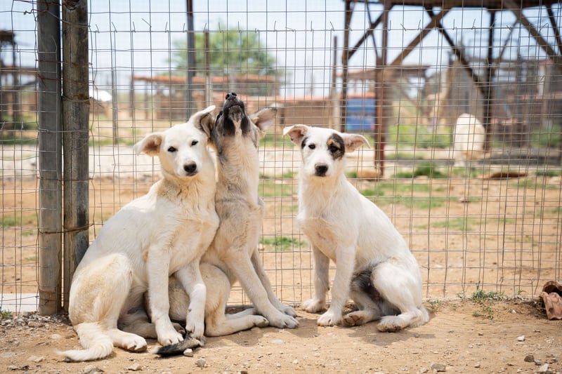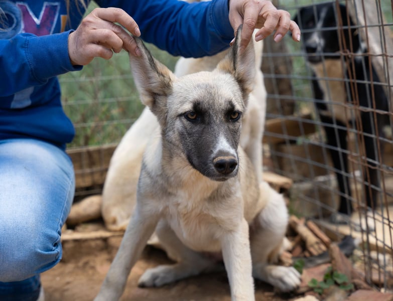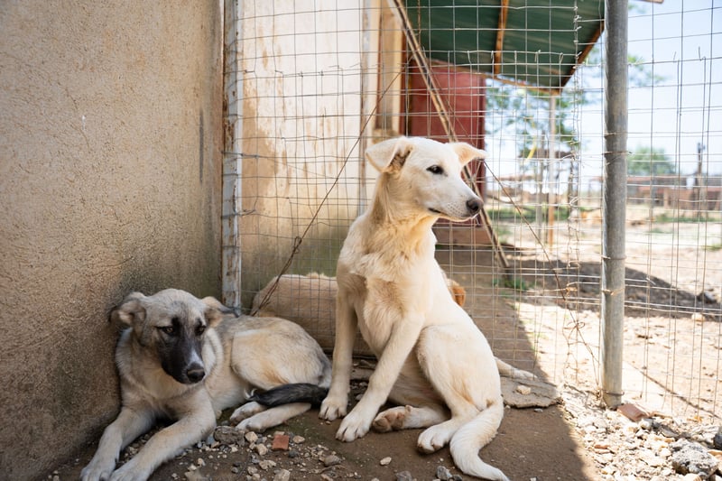 Heute leben sie in der Auffangstation unserer Tierschützerin Chrisa in Griechenland. Dort teilen sie sich ein großes Gehege mit anderen Hunden und zeigen sich sozial, ruhig und friedlich. Doch trotz allem sind sie noch etwas schüchtern gegenüber Menschen – keine Spur von Aggression, nur vorsichtige Zurückhaltung.