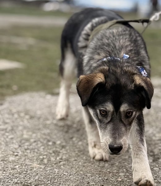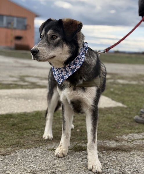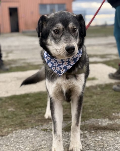 Zazuji ist ein Rüde, er ist laut Tierarztschätzung ca. 1 Jahr alt (geb. 26.12.2024), wiegt 24 kg und ist 56 cm groß. Vermutet wird ein Husky-Labrador Mischling.